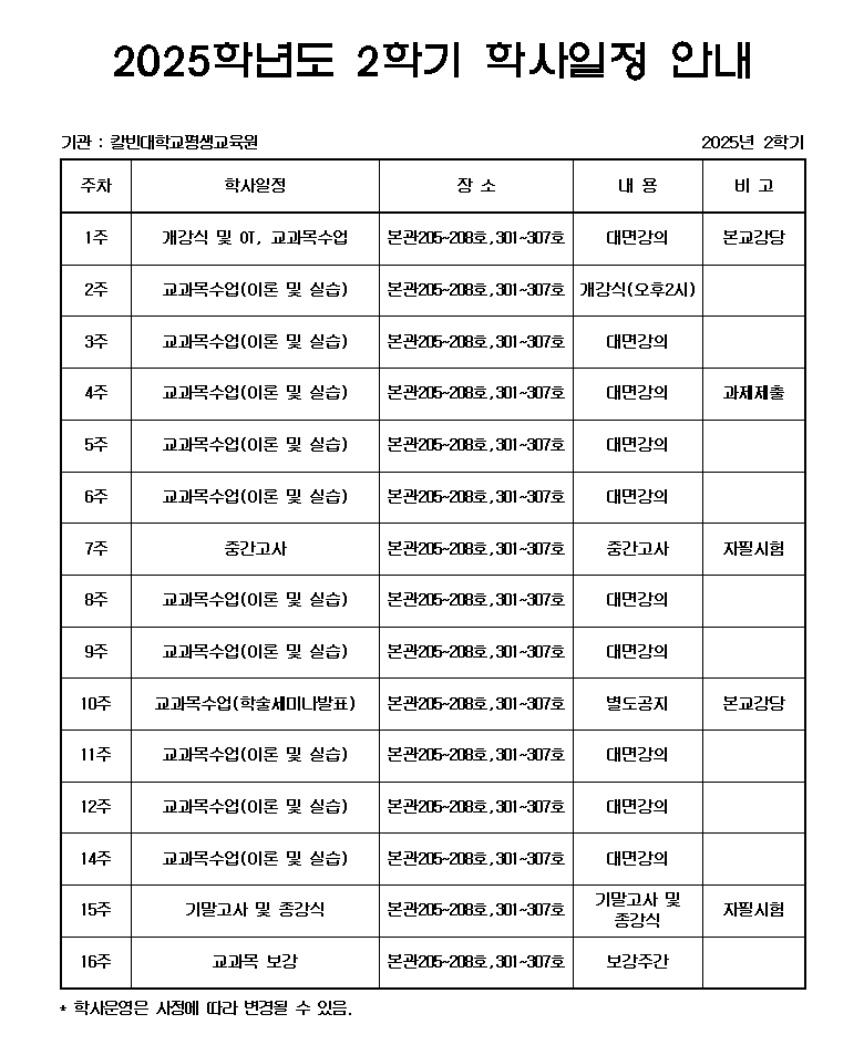 "배움의 가치를 이어가는 곳 , 배움으로 미래를 세우다. 칼빈대학교 평생교육원"